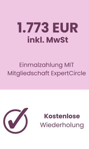 Du bekommst einen Zugang zum Online-Trainings-Portal. Dort findest du vorbereitend auf dein Praxistraining theoretisches Hintergrundwissen. Um das Online-Training zu absolvieren, benötigst du ca. 10-15 Stunden. Bitte absolviere dies vor dem viertägigen Praxistraining, denn dieses baut gezielt darauf auf.